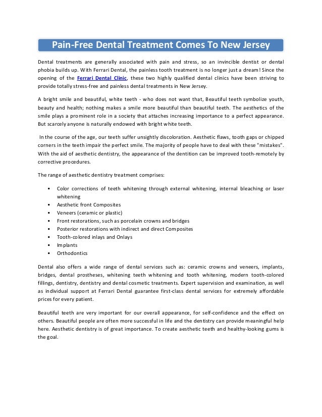 Pain Free Dental Treatment Comes To New Jersey